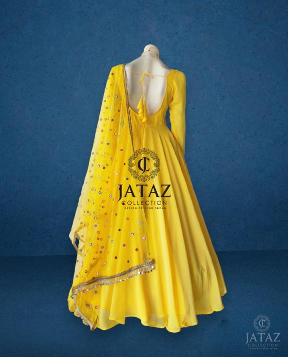 JATAZ PRESENTS SIMPLE YELLOW GEORGET GOWN WITH SWAL