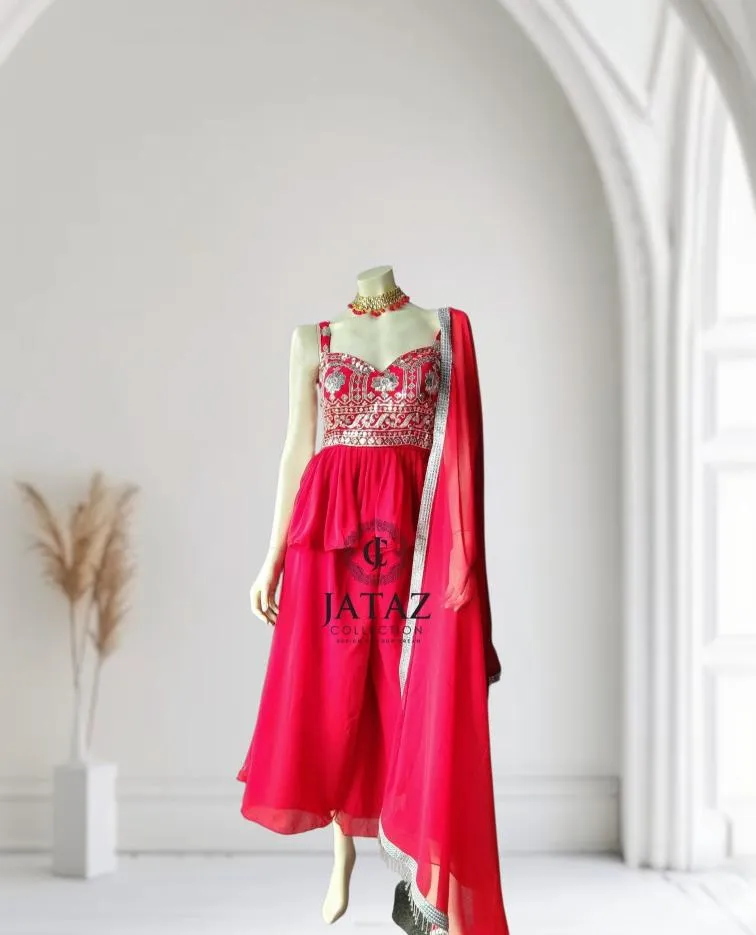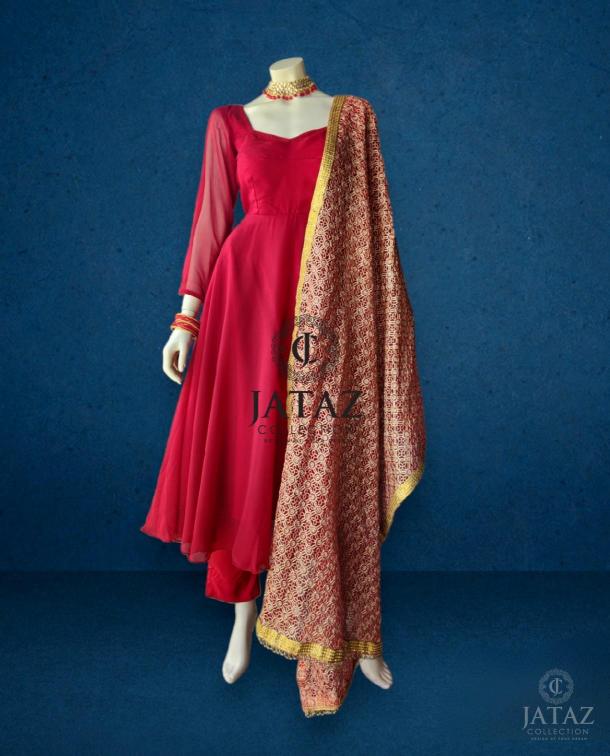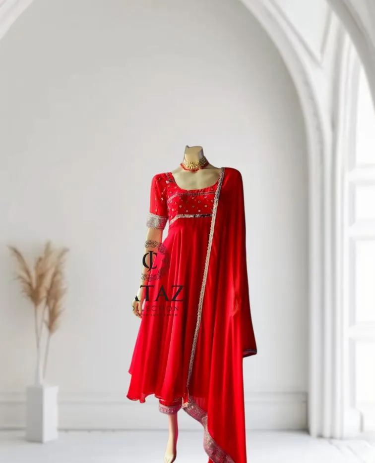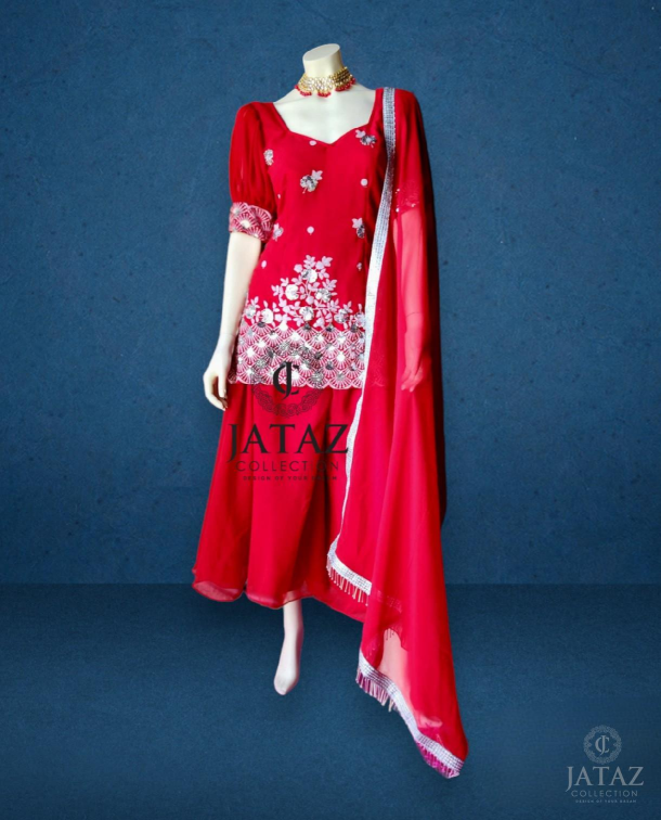 RED GEORGET GOWN WITH HEAVY SWAL (K0067)