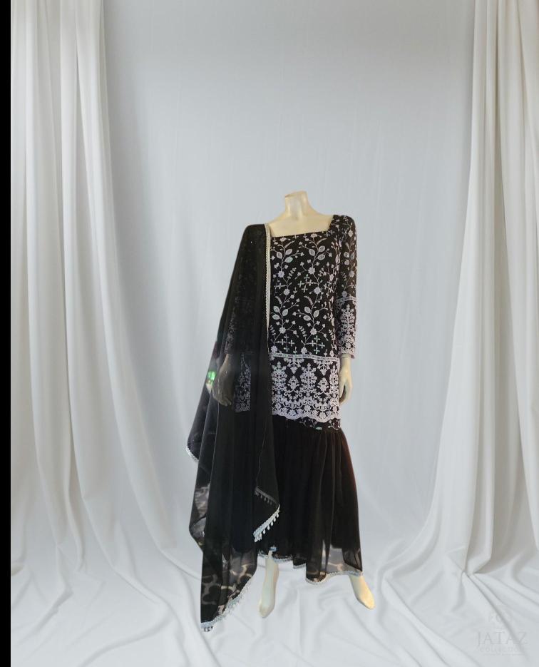 DESIGNER 3 PIECE BLACK KURTHA SET (K0122)