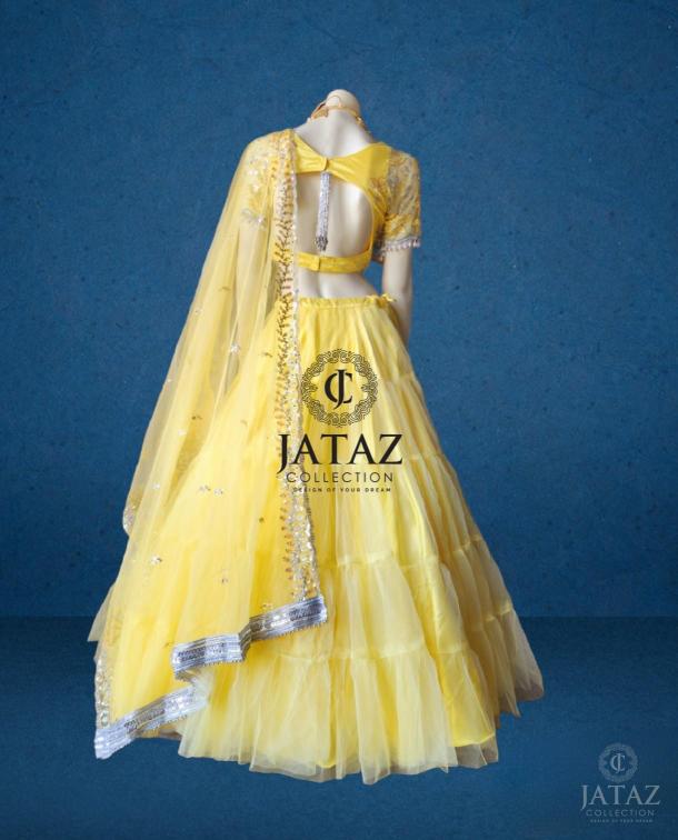 JATAZ PRESENTSS 3 PIECE YELLOW LAYERED LEHENGA SETS WITH SEQUENCE AND THREAD WORK BLOUSE WITH BEAUTIFUL SWAL